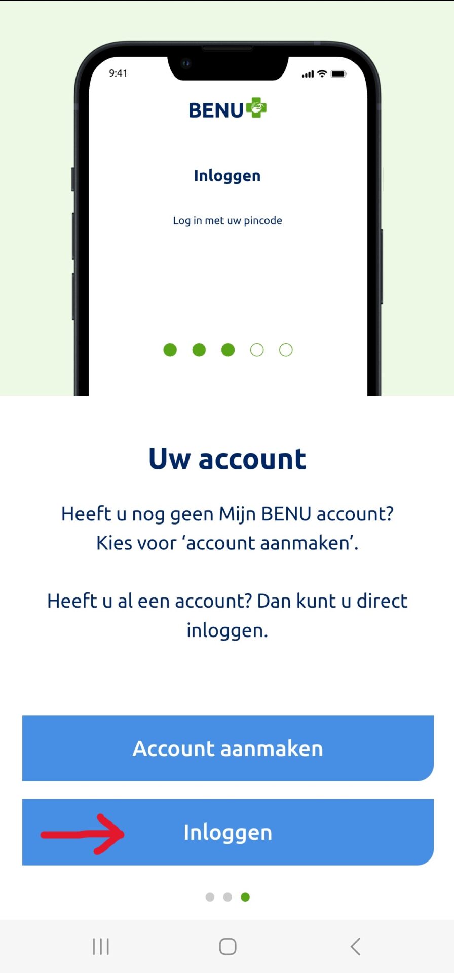 Log vervolgens in met met de gebruikersnaam en wachtwoord dat u heeft aangemaakt tijdens het aanmaken van een Mijn Benu account.